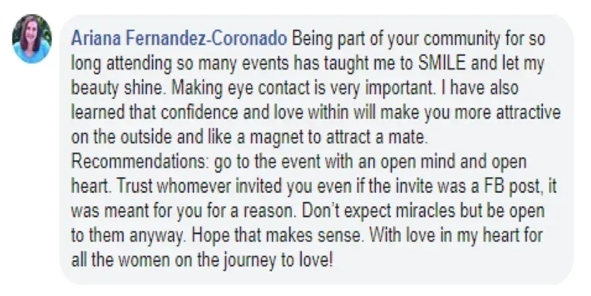 Through powerful exercises and evening breakouts, you’ll take ownership of your love life in a way that creates alignment and not pressure.